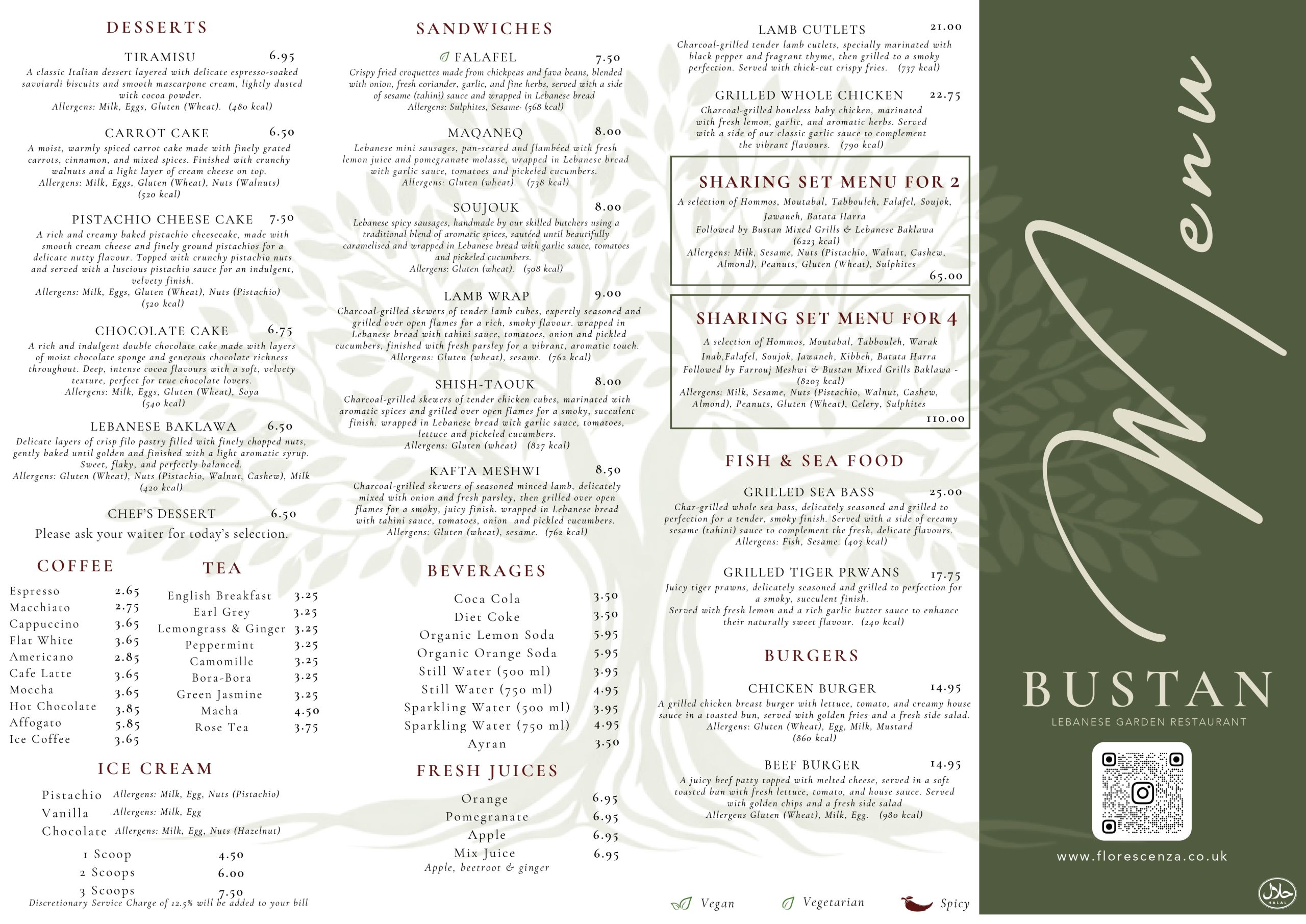 Nestled within the lush surroundings of Florescenza Garden Centre, Bustan Lebanese Garden Restaurant offers an authentic Lebanese dining experience in a truly unique botanical setting. Surrounded by exotic plants, mature trees, and beautifully landscaped greenery, Bustan — meaning “garden” in Arabic — brings the warmth and generosity of Lebanese hospitality to the heart of London.
