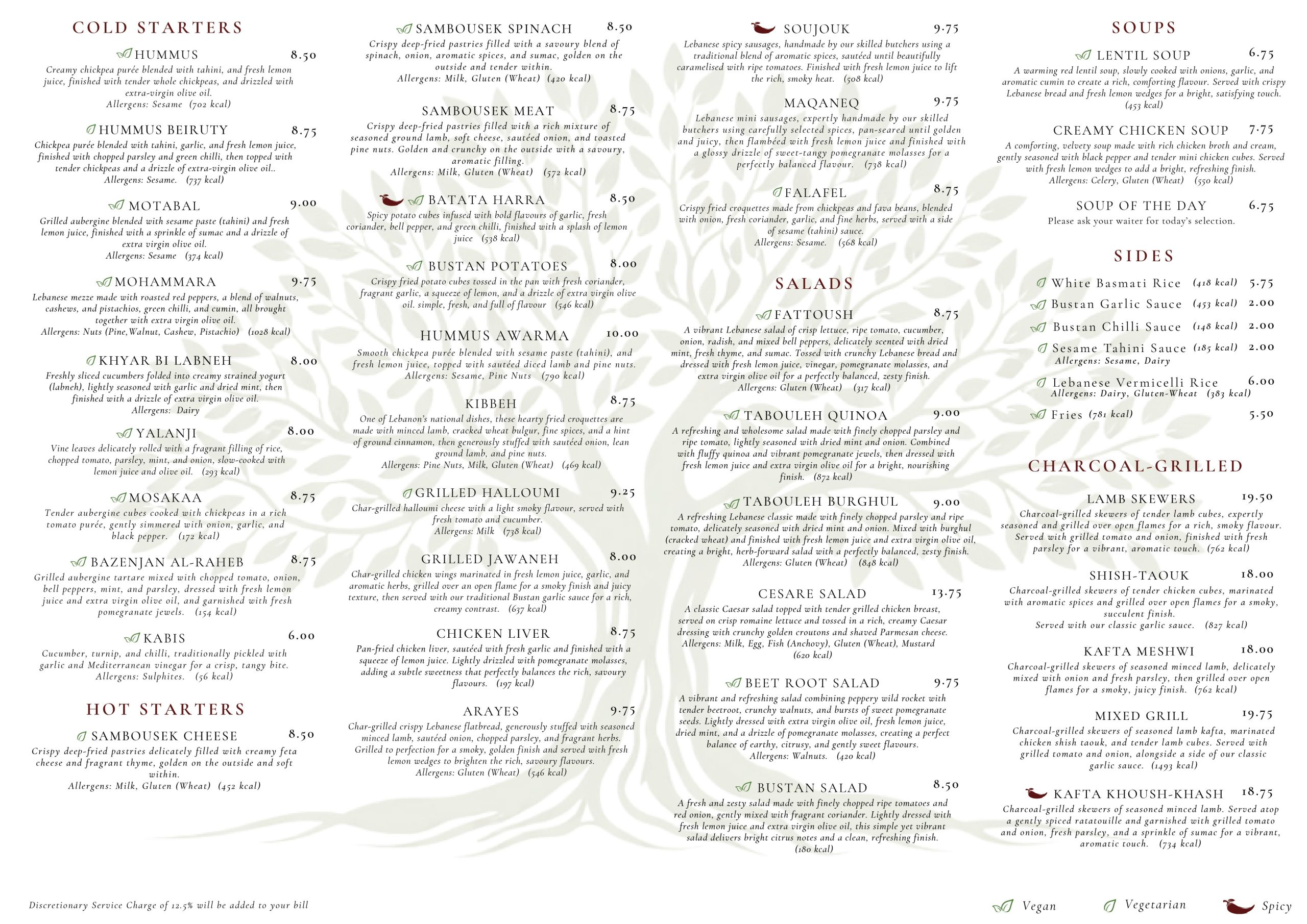 Our menu celebrates the rich culinary heritage of Lebanon, featuring charcoal-grilled meats, vibrant mezze, fresh salads, and traditional Lebanese breads served alongside every meal. From tender shish taouk and mixed grills to creamy hummus, smoky baba ghanouj, crisp fattoush, and freshly prepared tabbouleh, each dish is crafted with quality ingredients and authentic flavour.
